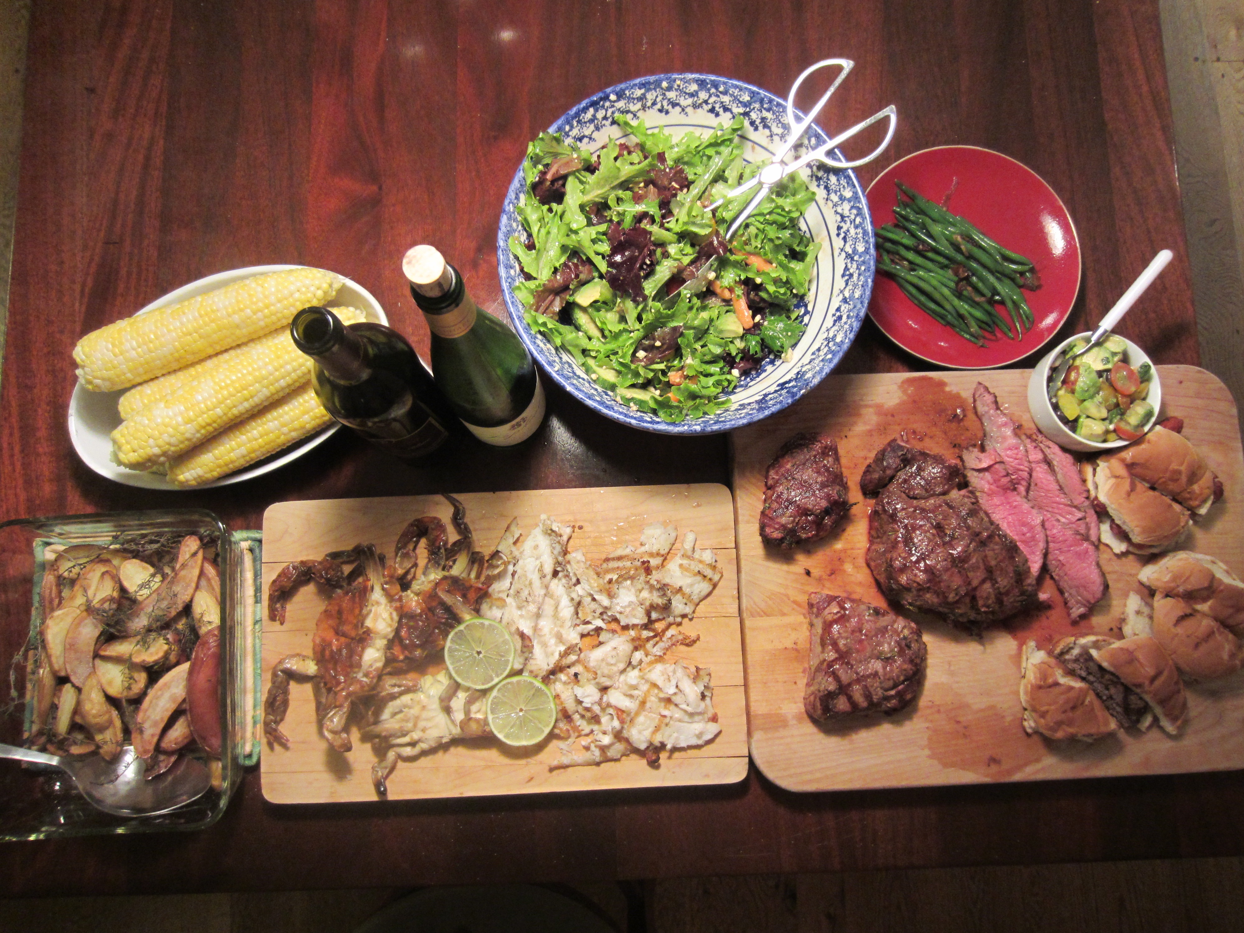 The dry summer is creating a challenge to crops but the teeming ocean swells alive. Lobster, Fluke, Blue Fish, Scallops and especially crabs are abundant and well-priced. Look for these under $20 values to enliven your long weekend meals.
