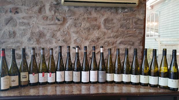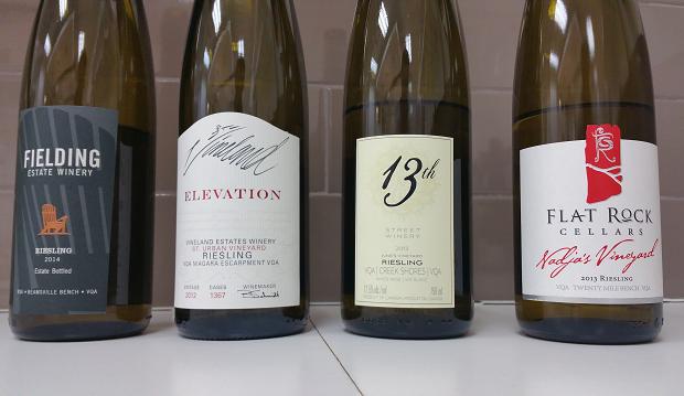 From left to right: Creekside Estates Laura’s White 2013, Gehringer Brothers Private Reserve Pinot Gris 2013, Henry Of Pelham Estate Chardonnay 2013, Small Talk Vineyards Recap Syrah 2012, Pearl Morissette Cuvée Black Ball Riesling 2013 and Burrowing Owl Syrah 2011