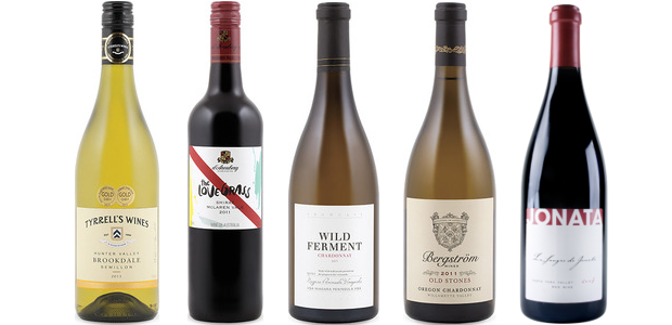 From left to right: Tyrrell’s Brookdale Sémillon 2013, D’arenberg The Love Grass Shiraz 2011, Hillebrand Showcase Series Wild Ferment Chardonnay 2011, Bergstrom Old Stones Chardonnay 2011 and Jonata La Sangre De Jonata Syrah 2008