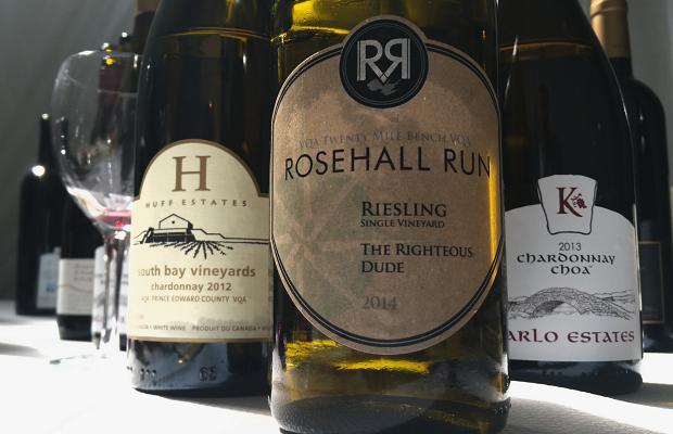 From left to right: Raven’s Roost Pinot Noir 2013, Creekside Estate Winery Pinot Noir Queenston Road Vineyard 2013, Hidden Bench Estate Riesling 2013 and Rosehall Run Hungry Point Pinot Noir 2013
