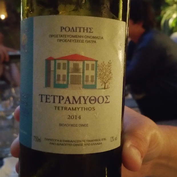 Pulled from four vineyards at 650-850m of altitude and from vines 19-42 years old. No skin contact though it shows a light, slight tinge of colour. Nearly platinum in its yellow hue, perhaps attributed to organics says Papagiannopoulos, Eighty per cent was achieved through natural ferment (with zero malolactic) plus “one tank for security.” Roditis can go clean or develop anti-austerity, texture, viscosity in the direction of a dirty projector. The Tetramythos glides “forward through the clover and the bergamot.” I can see what she’s seeing. Tasting like a leesy ripe peach, this is the best “basic” Roditis tasted in Achaia. Serious match of Aleria Restaurant‘s Sea Bass Tartare. Drink 2015-2020. Tasted July 2015