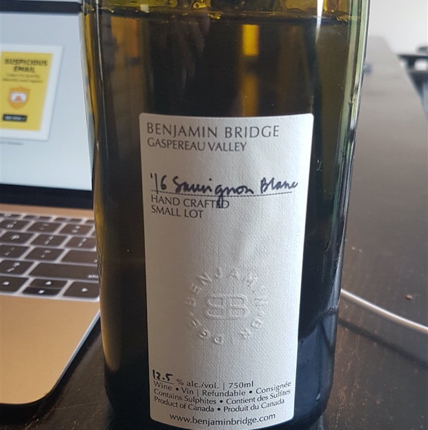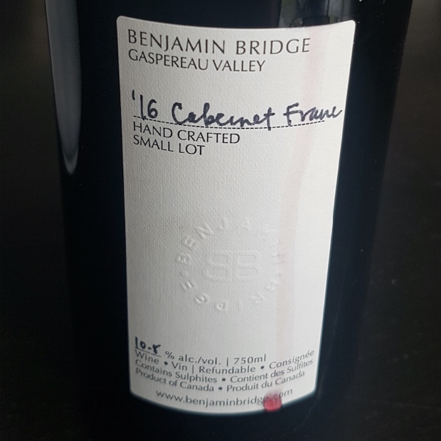 Benjamin Bridge Cabernet Franc Small Lot 2016, Nova Scotia, Canada (Winery, $57.95, WineAlign)