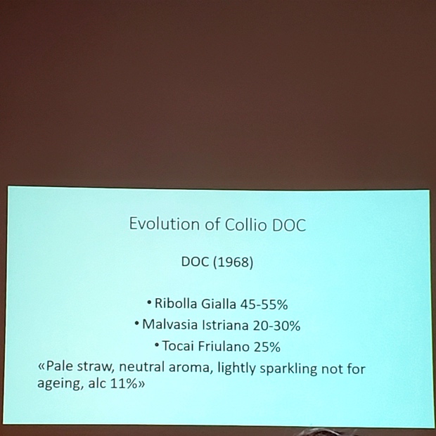 In 1966 the English author and journalist Cyril Ray remarked upon the pre-DOC “white wine made from a mixture of Tocai Friulano, German and Italian Rieslings, and a number of other varieties grown in the hills that encircle Gorizia.” The DOC was then created in 1968 with the suggestion to “drink young when it has a fresh taste and floral bouquet.” A vino contadino. In 1968 the numbers were more like ribolla gialla (45-55 per cent), malvasia istriana (20-30) and tocai friulano (25). Wines of “pale straw, neutral aroma, lightly sparkling, not for ageing, alcohol around 11 per cent.” Whereas all the mono-varietals came in at 12-13 per cent. So the concentration at the time was on indeed on mono-varietals, eventually leading to the evolution of the Bianco in the 1990s.