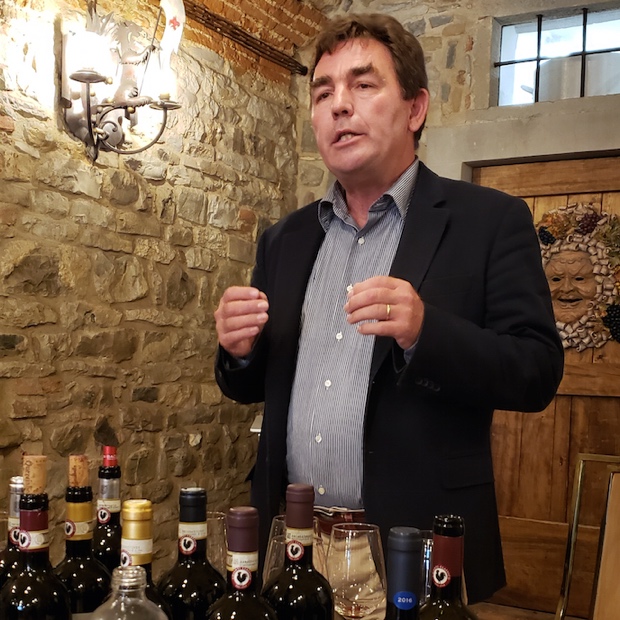 The estate dates back to 1982 under the current ownership. The Annata is 100 per cent sangiovese, “to tell the people about this place,” at 450m in the southeast corner of Gaiole, on marl and clay. A really silky sangiovese, modern CC with real classic undertones. Tart, tangy, rich in acidity and tannin. Tells a commune story but a territorial one as well. Last tasted September 2019