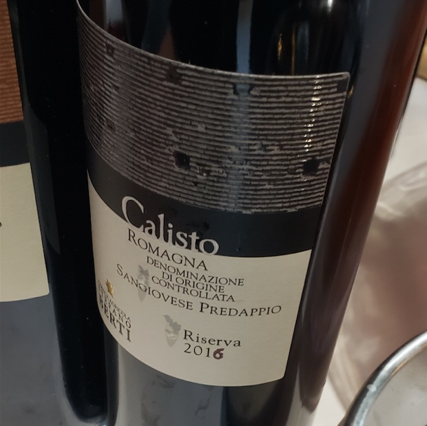Stefano Berti is located in Ravaldino in Monte, Forlì and his first wines were produced in 2000. He’s not so much a cru guy as one who prefers fruit selection. This Calisto could refer to “a nymph loved by Zeus, changed into a she-bear by Hera, and subsequently changed into the Great Bear constellation,” minus one “L.” Or perhaps “the second-largest moon of Jupiter,” also missing an L. It certainly isn’t Italian for “it sucks” because this sangiovese is fresh and tart, a bit lean but who could not appreciate the restraint and very little (apparent) wood. A good drink and fresh enough still. The barrel shows up as the wine airs and the length is quite good. Drink 2021-2024. Tasted blind at Vini Ad Arte, Casa Spadoni, Faenza February 2020