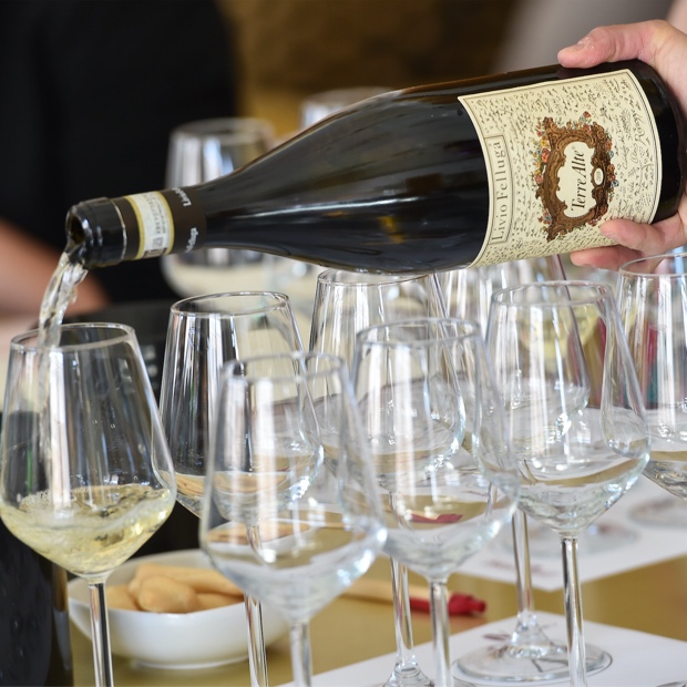 This tasting of one of Friuli-Venezia Giulia’s most knowable, respected and consistently worthy white wines is the second of three at Gambero Rosso’s three-day celebrazione weekend for the Guida Vini d’Italia 2022 top wines of Italy. The date is October 15, 2021 and the location inside the Chorus Cafè inside the Auditorium della Conciliazione. Terre Alte, literally “high lands,” obviously speaks to the hills in northeastern Italy but also to loftiness and something connected to a higher calling, as in an “atmosphere of spiritual tranquillity” which would attract an “increasing number of the faithful.” The friulano, sauvignon and pinot bianco that make up Rosazzo Terre Alte are like the cells that bind an abbey together.