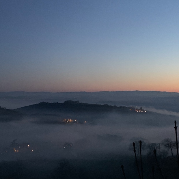 On April 8, 2021 mail from Tommaso Cortonesi brought news of the early April frosts. “Here in Montalcino the Covid situation is under control but in the last couple of days we had to fight a dangerous enemy. Temperatures lower than 0’C. Last night several producers in Montosoli including me, Capanna, Baricci, Val di Suga, decided to burn hay bales to try to protect the vines with the smoke. Fortunately the vegetative state of the vines is still quite early so we hope this action has limited the possible damages. I send you attached some pictures from last night.”