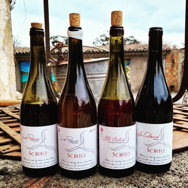 Scirto is the work of Giuseppe Scirto and Valeria Franco near Passopisciaro, with grapes since 2010 and from vineyards inherited from their grandparents. They have vines in Feudo di Mezzo and Porcaria, mainly nerello mascalese. Don Pippinu comes from a tiny plot of ungrafted 80-100 year old nerello mascalese and nothing off of the north slope of Mount Etna resembles what’s in this glass. Throws a light sediment, its hue is orange sky pastel at dawn and a flirtatious volatility marks the nose. Opens to an earthy if wild berry fragrance and then the salty-geological basaltic rock energy alights, if of a purpose to wake up the palate. Do not be fooled into any commercial space or domain for this is a natural expression of the Feud di Mezzo zone. Not on purpose mind you but a Rosso that is precise and as was unintentionally intended. So much beauty in the complexion of its flaws, a taste into the mirror of what is necessary and also possible. Wouldn’t age this too long but can think of many, many wine geeks who could crush the bottles of such a quietly provocative Rosso. Drink 2022-2026. Tasted April 2022
