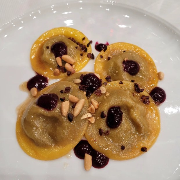A most unusual set of aromatics, hard to define, put a finger on, gather thoughts about what is there. Acts like black fig and liquid cocoa, balsamic and sweet tart. Lots of perfume from a bottle re-corked two years ago, sulphites adjusted and same vintage used to top up. Also the first vintage bottled by Francesco’s father in 1974, from barrels found in the cellar. Brighter acidity, orange citrus, light caramel, feeling like there are other grapes in this wine, perhaps ciliegiolo and even trebbiano. Not likely canaiolo because the pH here is as low as it gets and that grape would bring it up. Drink 2022-2023. Tasted November 2022