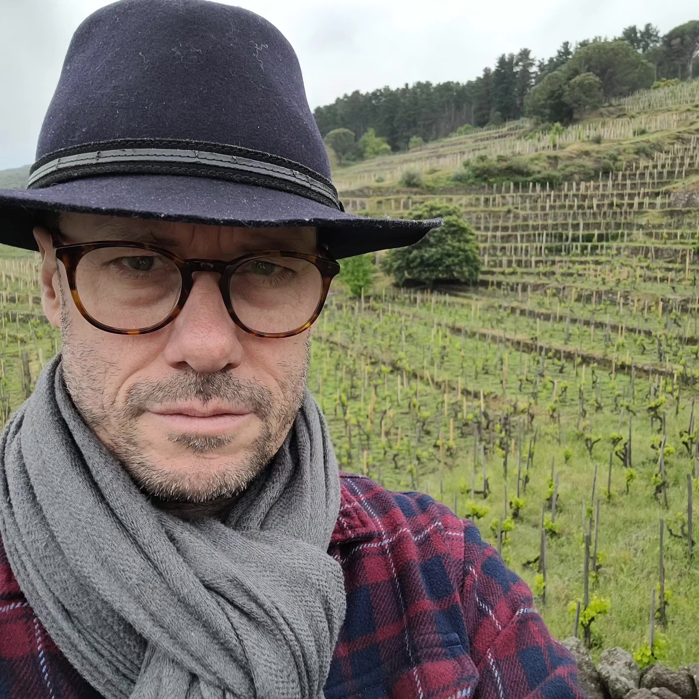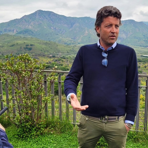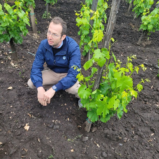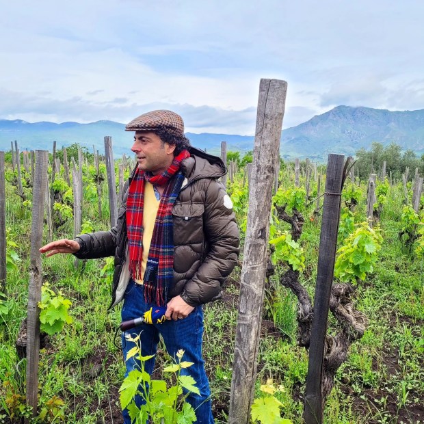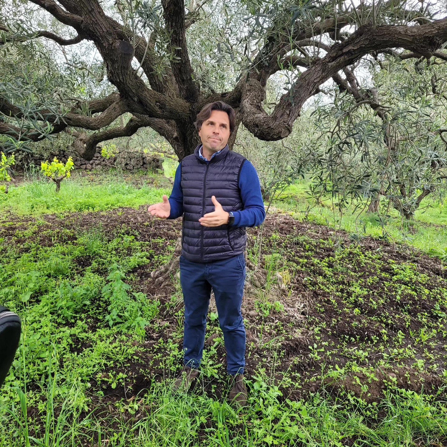 Federico Lombardo in the Firriato experimental vineyard explaining the science of staving off Phylloxera