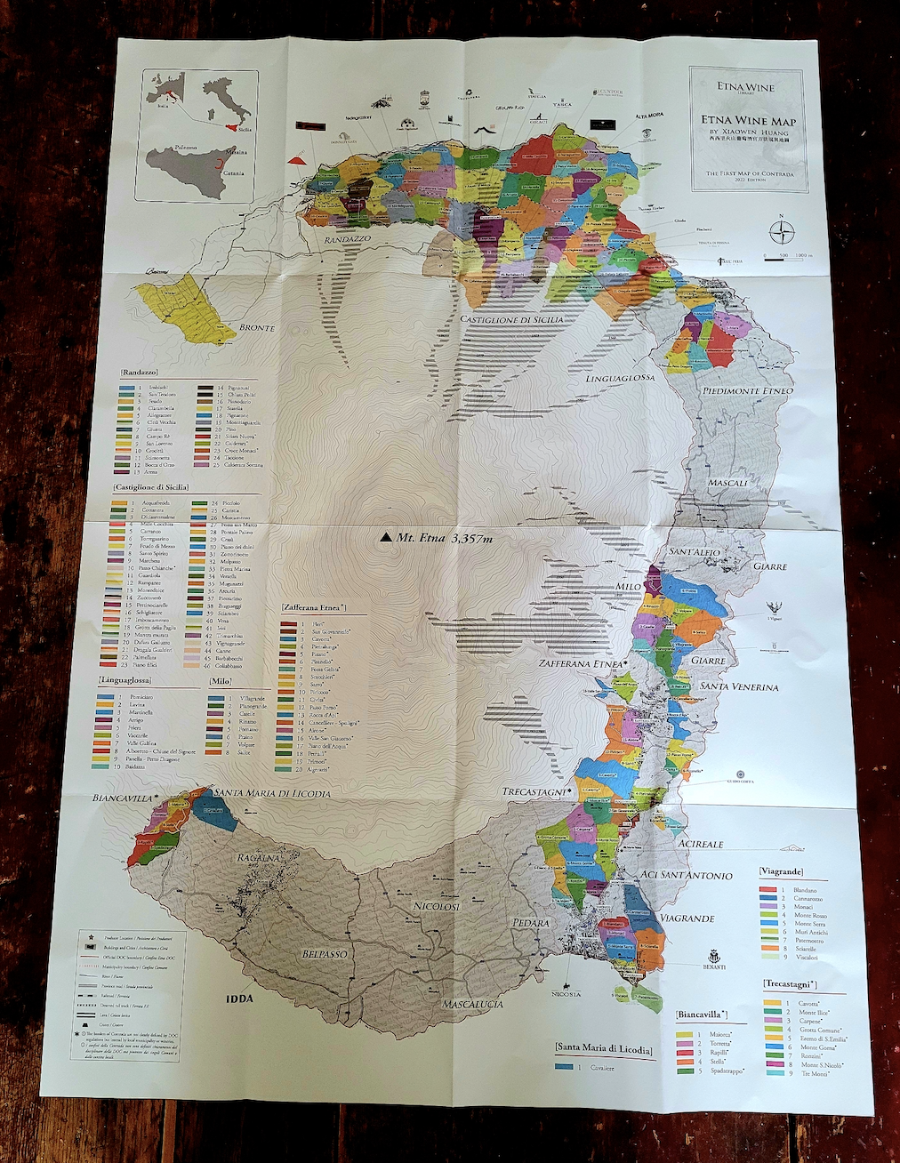 The task of mapping Etna’s communes, villages, contrade and vineyards has been a complicated and formidable one but a Taiwanese journalist named Xiaowen Huang spent several years assembling the information and the substance for this great cartographic endeavour. The first edition of the first comprehensive map of the Etna Contrada was established in 2019 and recently published in 2022. Huang’s efforts have not been recognized by the entirety of the Etna cognoscenti but those who know are aware of its significance. The exercise was made even more difficult because geographical lines are a contentious matter and not all of L’Etna’s estate owners agree along contrada lines, nor to a producer do they harbour the same opinion on where elevation lines should be revised as it pertains to DOC status. Traditionally these were drawn based on existing roads and natural barriers such as rivers and streams. It would be foolish to dismiss each and every claim and also hard to ignore the liberties taken by some producers whose vineyard holdings straddle recognized demarcations and so there are some DOC wines that take their home field advantage. Still there are others labeled as Terre Siciliane IGT when their claims are likely as valid as some DOC wines. The stakes are high and challenging for such a young region. As it stands, these are the facts, rules and numbers.