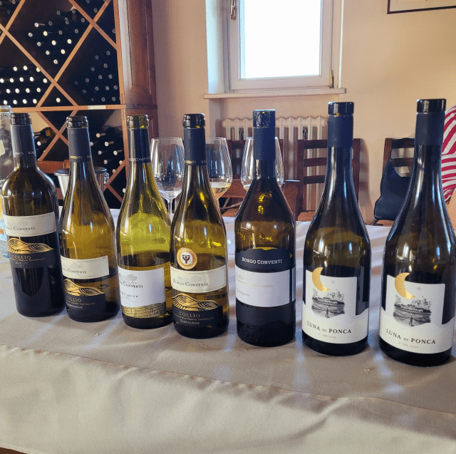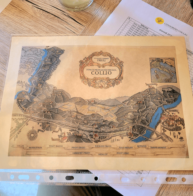 In May 2019 I tasted through upwards of 100 examples of various Collio DOC with nine “neighbourhoods” as their collective source; Brazzano Di Cormòns, Capriva Del Friuli, Cormòns, Dolegna Del Collio, Farra d’Isonzo, Gorizia, Mossa, Oslavia and San Floriano del Collio. Sauvignon and Collio Bianco were most concentrated upon. In July of 2023 we began with those two wildly diverse first Consorzio Collio tastings led by the legend Baudains. The tastings were well orchestrated by our Sommeliers, the Consorzio’s Lavinia Zamaro and La Fede, a.k.a. Federica Schir. On this trip I tasted 116 examples of Collio DOC (and two Venezia-Giulia IGT). They are broken down as follows: (10) malvasia, (12) ribolla gialla, (23) friulano, (22) sauvignon, (22) pinot grigio, (17) Collio Bianco, (10) other varieties and (2) IGT. Here are the notes.
