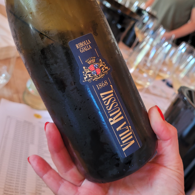 Owned by Frescobaldi, warm site and early picked. The first and likely most reductive of the first 10 ribolla gialla, a bit mephitic to be honest and agitation is necessary. Lots of fine wine behind the veil, intense, implosive, layered and stony. The most mineral driven expression and a wine to attract a very specific crowd. Drink 2023-2026. Tasted July 2023