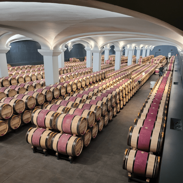 Château Pichon Baron’s Pauillac terroir includes clay and also chalk beneath which makes for two-way conversions of both water retention and drainage. Château Phélan Ségur’s northern blocks are truly gravelly overtop heavy clay subsoils, more clay than those closer to the Gironde. The clays are really helping with the challenge of extreme heat days (18 of them over 40 in the summer of 2023) by maintaining water and freshness. At Château Tronquoy the soils are really gravelly with larger stones like Châteauneuf-du-Pâpe, a truly unique terroir for Saint-Estèphe. More clay composition at the surface in the Tronqouy soils as opposed to sister property Montrose (and also Dame de Montrose) where that clay lays lower, below the sand and gravels. Château Les Carmes Haut-Brion’s city vines do not cool down like the 35 hectares found in the countryside though they are are still within the limits of Pessac-Léognan. The Bordeaux city vineyards are generally three degrees warmer, especially at night and the Grand Vin is produced from these vines. The blue clay here is special, much less “sticky” than Pauillac and integral to the ripening and development of the cabernet franc. Horses are used in the vineyards to reduce the amount of tilling, tractor and machinery disruption.