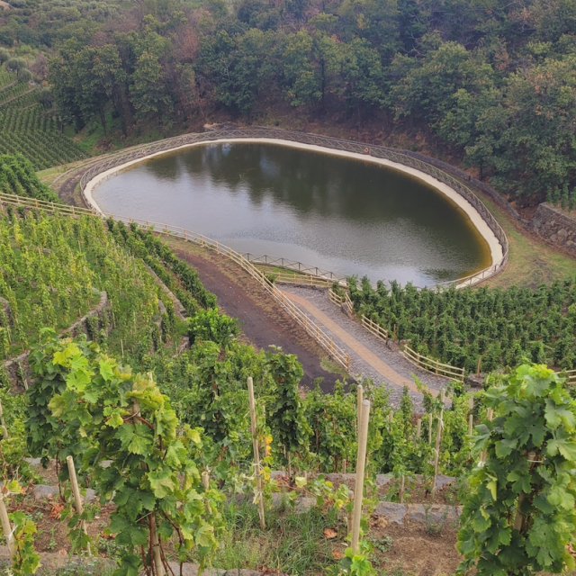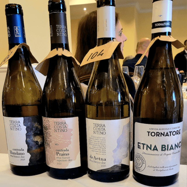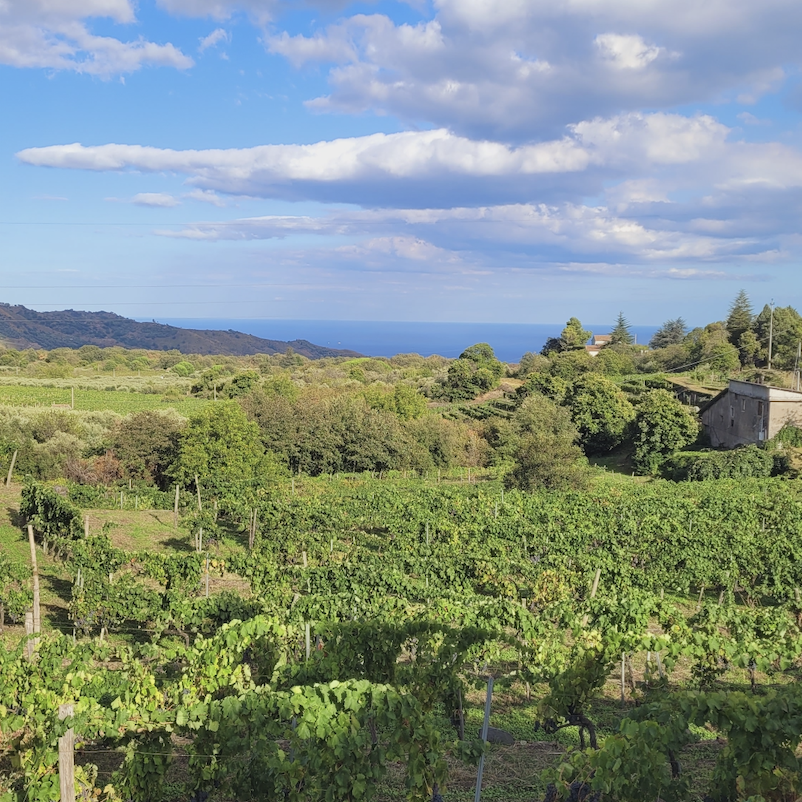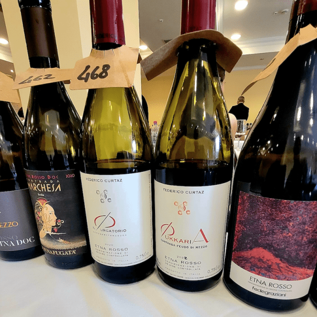Etna Rosso from the single contrada (Arrigo) where Terre Darrigo’s amphitheatre grows nerello mascalese in a most beautiful rustic setting on southeastern facing, tightly packed terraces between the volcano and the sea. You can feel the great difference between this wine and the classico Rosso though if you are from this place you say it with sentito, that is with feeling, shouting out this is “the wine from L’Etna!” This single contrada wine elevated from that appellative discourse, softens the bitter cherry stone and smooths transitions. This because it’s a very well made Rosso from a place of great potential. Drink 2024-2027.  Tasted September 2024