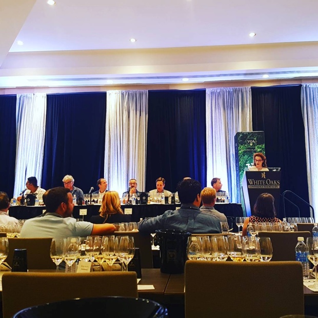 Godello tasted and has reviewed 80 wines during the four-day conference; At the School of Cool; In the White Oaks media room set up by the Wine Marketing Association of Ontario team led by Andrea Peters; At visits to Cave Spring with Gabriel Demarco and Malivoire with Shiraz Mottiar; An evening at Ravine Vineyard with Jeff Moote of Divergence Wines, Jonas Newman and Marlise Ponzo of The Grange of Prince Edward, Chris Thompson and Stephen Del Degan of Volta Estate Winery and Ron Giesbrecht from Wending Home Estate Vineyards & Winery; Lunch at Black Bank Hill with Taylor Emerson, Jonathan McLean and Meg McGrath; At the evening events held at Friday Night Flights, Niagara District Airport, Niagara-on-the-Lake and at Chardonnay in the Vineyard World Tour Tasting and Dinner at The Riverbend Inn, Niagara-on-the-Lake. Here are the notes.