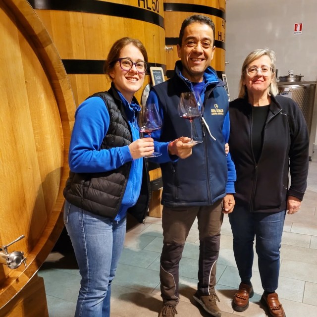 A studious and vigna intensive first visit with Victor Camilo Duque Crociani, GM Francesco Montalbano and agronomist Mattia Achenza. Gaiole’s famous Castello di Meleto has been a territorial guardian watchtower and fortress since 1256 with 1000 hectares, nearly 800 of which are forested. There are 130 hectares of vines in two località, Meleto and San Pietro, 80 percent planted to sangiovese, with merlot, cabernet sauvignon, trebbiano, malvasia and (0.5 ha) san colombano. The team has gone all in to isolate and exult the identified single vineyards, now with three Vigna labels; Trebbio, Poggioarso and Casi, the last one located on the road to Radda. Trebbio is collee, with red argilla soils. Poggioarso (the arid hill) is higher elevation with Alberese and outcroppings of Galestro out of the clay. Casi is in a ventilated zone with Galestro out of Macigno (sandstone) soils but it’s uniqueness comes from some alterations involving some Alberese and sandstone-based Pietraforte. The vines have been in transition since 2020 from Cordone to Guyot training, organic now for 10 years and largest such estate in the territory. Consulting oenologist and agronomist are Valentino Ciarla and Giacomo Sensi.