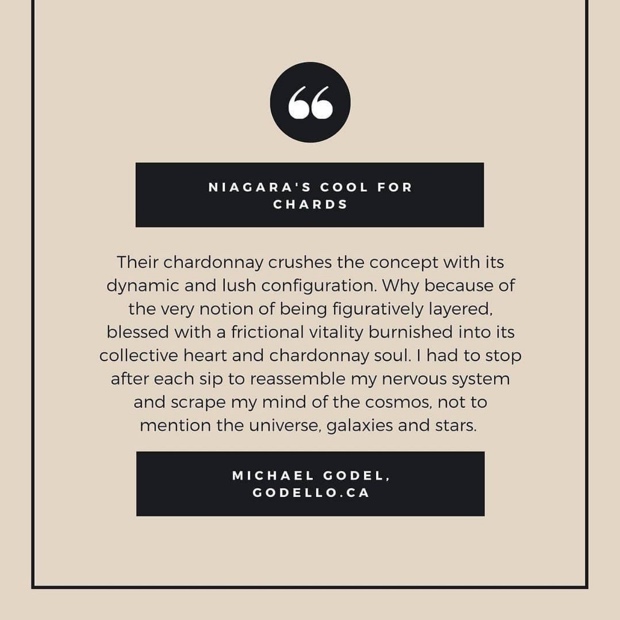 Godello tasted and has reviewed 80 wines during the four-day conference; At the School of Cool; In the White Oaks media room set up by the Wine Marketing Association of Ontario team led by Andrea Peters; At visits to Cave Spring with Gabriel Demarco and Malivoire with Shiraz Mottiar; An evening at Ravine Vineyard with Jeff Moote of Divergence Wines, Jonas Newman and Marlise Ponzo of The Grange of Prince Edward, Chris Thompson and Stephen Del Degan of Volta Estate Winery and Ron Giesbrecht from Wending Home Estate Vineyards & Winery; Lunch at Black Bank Hill with Taylor Emerson, Jonathan McLean and Meg McGrath; At the evening events held at Friday Night Flights, Niagara District Airport, Niagara-on-the-Lake and at Chardonnay in the Vineyard World Tour Tasting and Dinner at The Riverbend Inn, Niagara-on-the-Lake. Here are the notes.