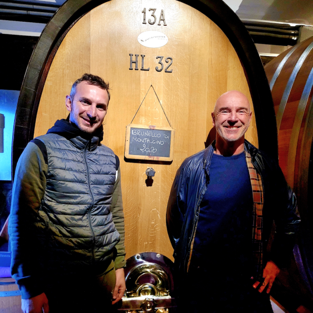 Which brings us to 2019. Ah yes, the already famous vintage and for many reasons, 99 percent of them good. Comparable to 2016 in the sense in that quality and quantity were both running high. The very famous oenologist Carlo Ferrini of Giodo described the weather as calda but not caldissima. A statement of the obvious says that the key to a great wine in Montalcino is the relationship and balance between phenolic maturity and acidity. Achieving this kind of success was challenging in the two previous vintages. The problem with climate extremes is rising pH numbers, loss of acidity and when this happens you can’t make adjustments after harvest to correct deficiencies. This vintage was a literally a breeze. All the correct winds blew through and yes it was a warm vintage, but with no heat spikes upwards of 40 degrees as there had been in 2015 and also 2016. That is why producers are very happy with and also relieved by 2019. Terms like quality and quantity, easy, uncomplicated, fresh and substantial were tossed about. Even the usage of “The Goldilocks vintage,” not too hard or too soft. Not to dry and not too wet. It was just right. Francesco Ripaccioli noted that on September 15th there was 45-50 mm of rain. “It didn’t affect the vintage,” he insisted, “but the rain cleaned the grapes before they came into the cellar. Tomasso spent three weeks at the beach.” He was joking. Mostly.